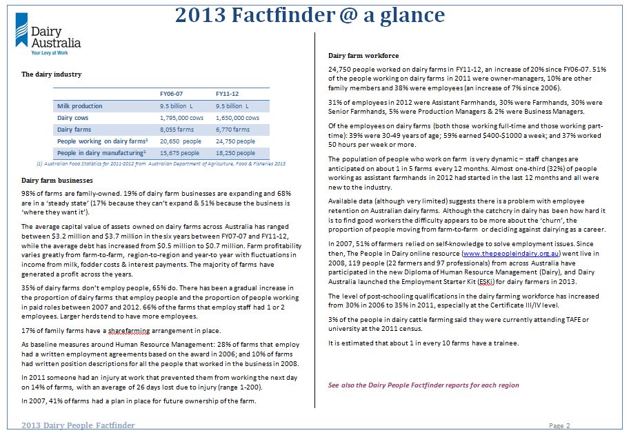 Above: The Dairy People Factfinder is compendium of facts and figures about the people in the industry for policy makers and program designers